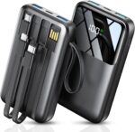 Portable Charger with Built-in Cables for Multiple Devices: This portable charger includes integrated USB A, Type C, IOS, and Micro cables, making it compatible with iPhone 16/15/14/13/12, Samsung Galaxy, Google Pixel, iPads, tablets, headphones, smartwatches, and more. Perfect for work, travel, or camping, it eliminates the need for multiple cables and adapters, providing reliable power for a seamless travel experience.