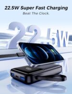 22.5W Fast Charging for Maximum Efficiency: This power bank delivers 22.5W output with advanced fast-charging technology, reducing charging time significantly. Its intelligent voltage regulation adjusts to the optimal output for each device, ensuring fast and safe charging. For fast-charging devices, just a few minutes can provide a noticeable power boost. This feature enhances user experience and helps minimize battery wear from extended charging.